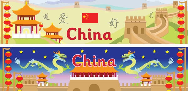A set of 2 large display banners / posters on the topic of Ancient China. Both feature illustrations of the Great Wall of China.