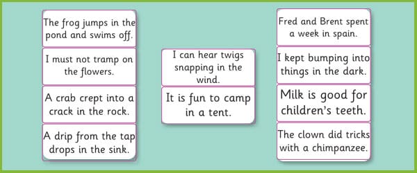 A set of 10 sentence cards featuring a selection of high frequency words from Phase 4 of the Letters and Sounds programme. Sentences include ‘a drip from the tap drops into the sink’ and ‘I can hear twigs snapping in the wind’.