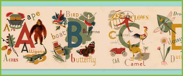 Beautifully illustrated alphabet taken from the 1945 book ‘A Child’s Alphabet’ drawn and designed by Grace Gabler. The PDF is made up of photos of the book supplied by Andy Field .